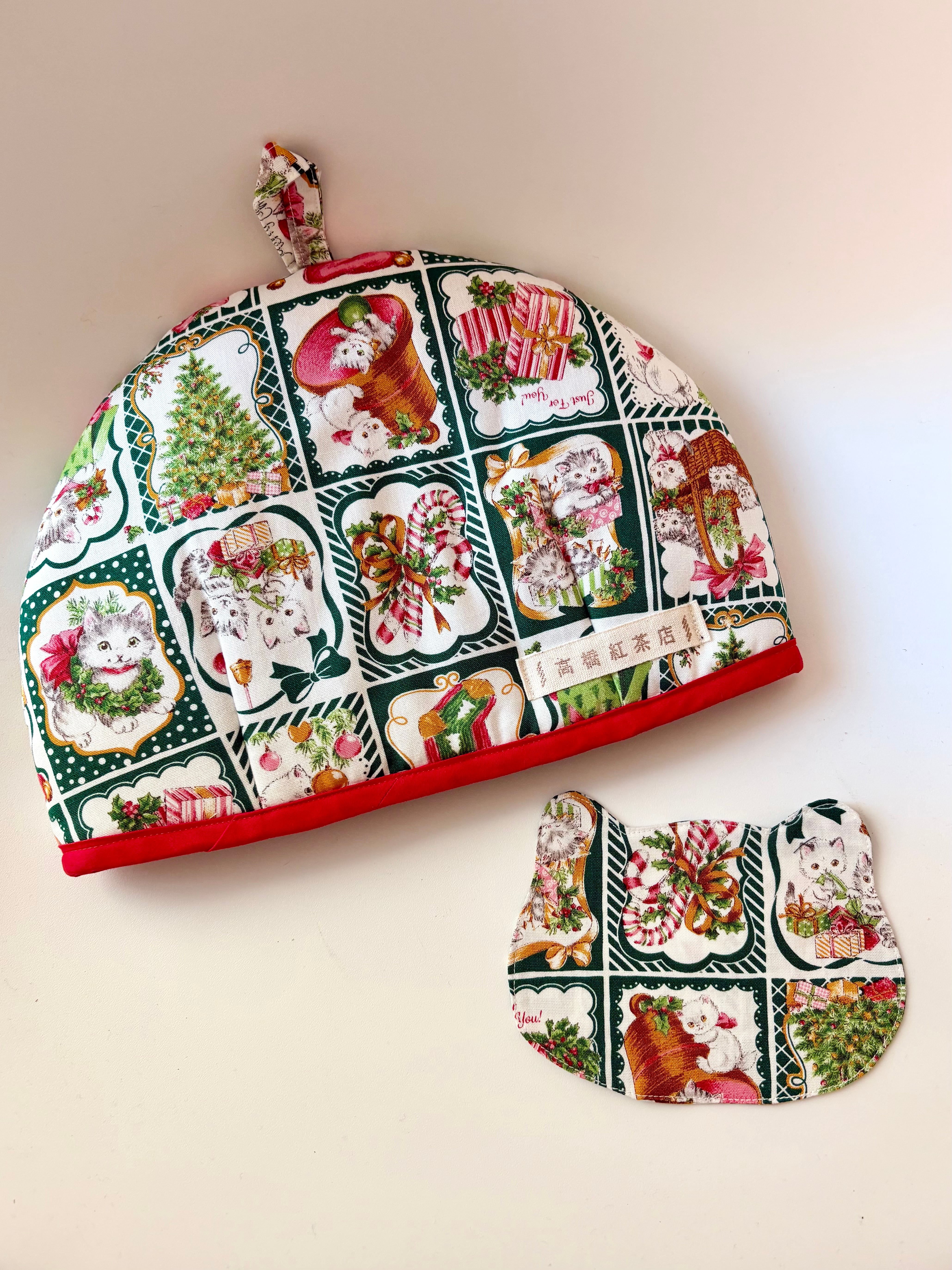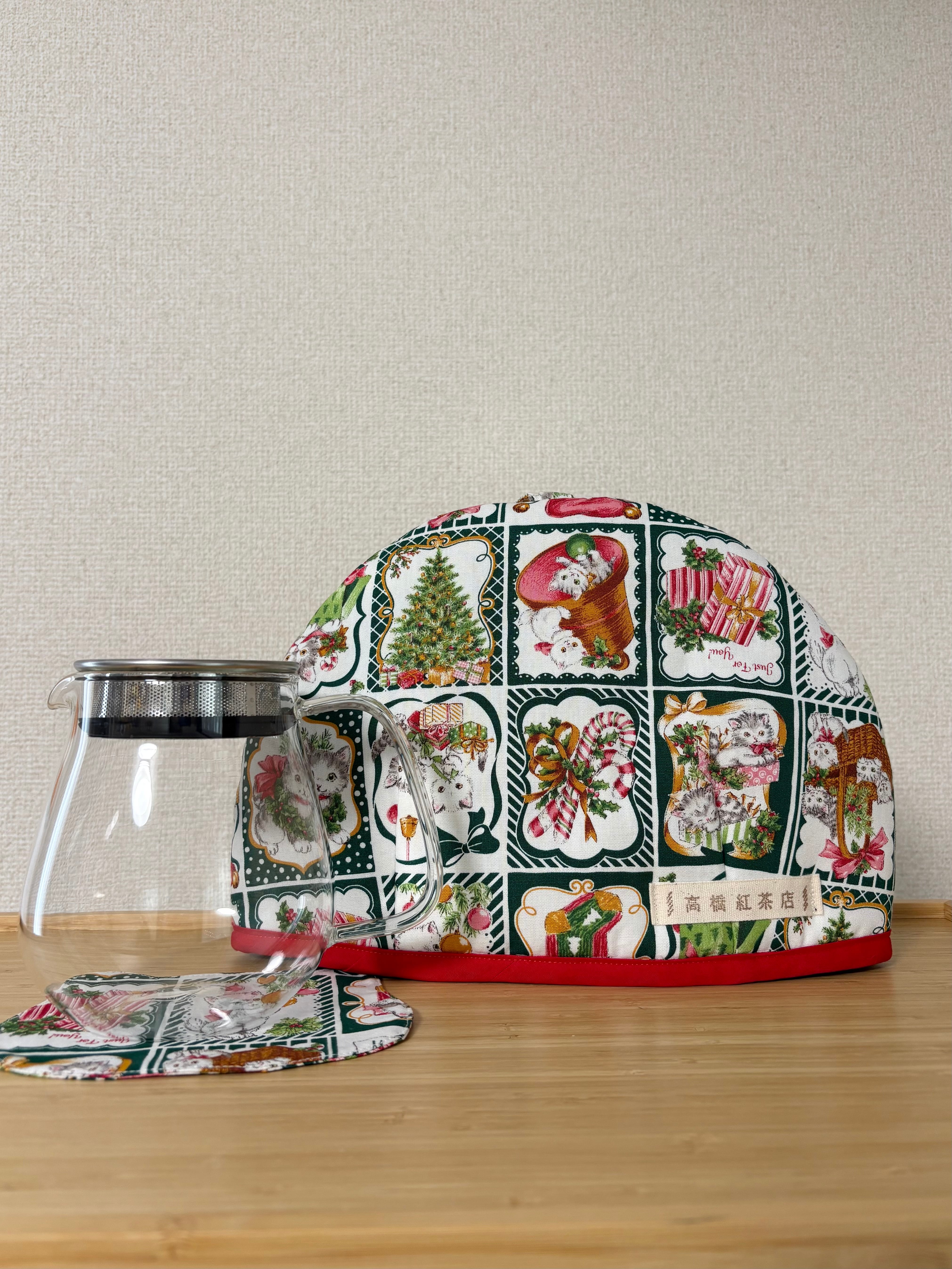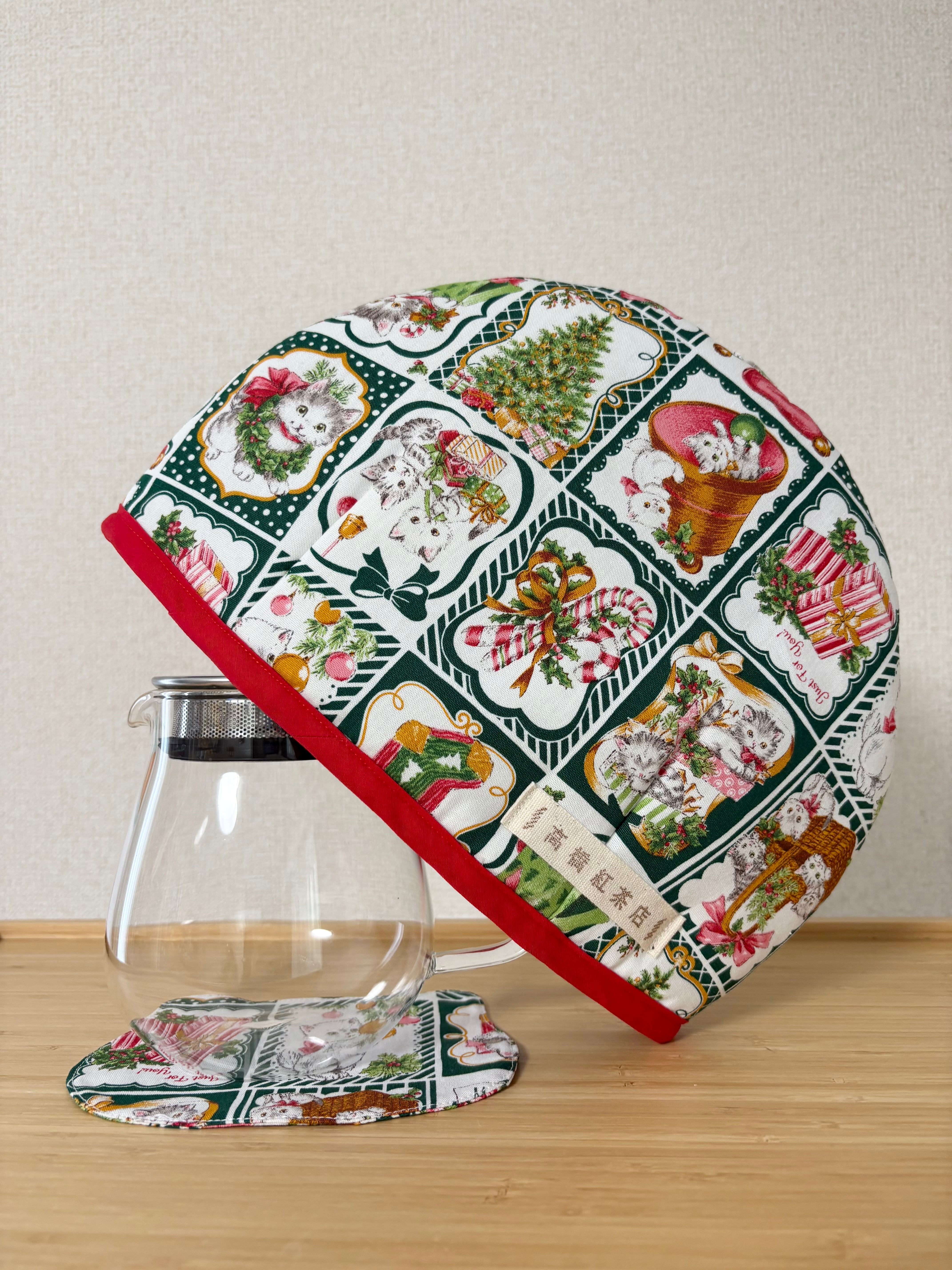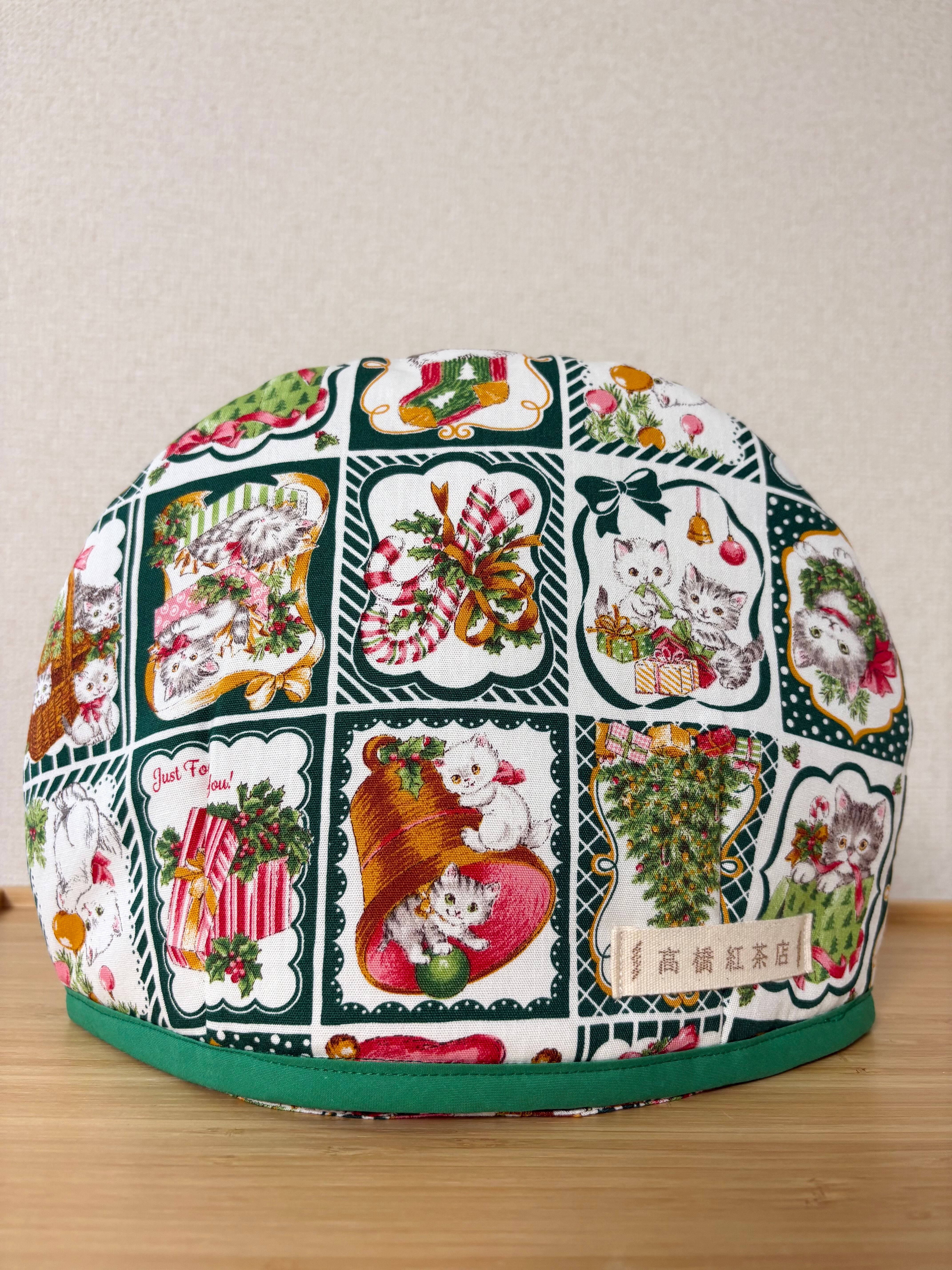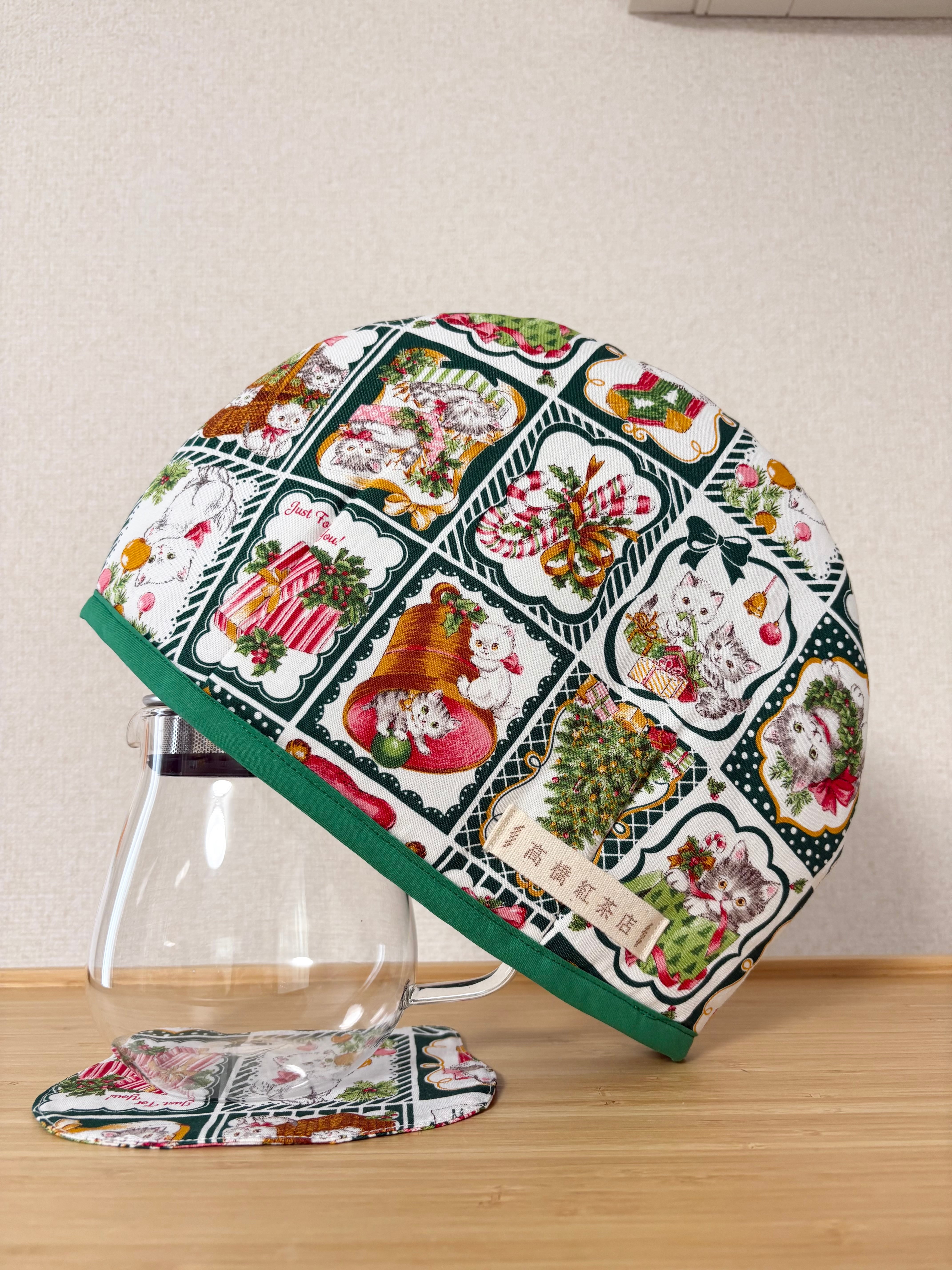 ティーコージーセット クリスマス猫ちゃん(緑)
